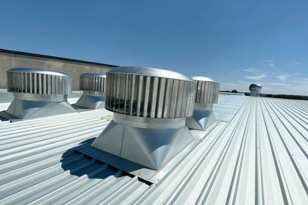 Eco-friendly, wind-driven ventilators ensuring natural airflow without the need for electricity.
